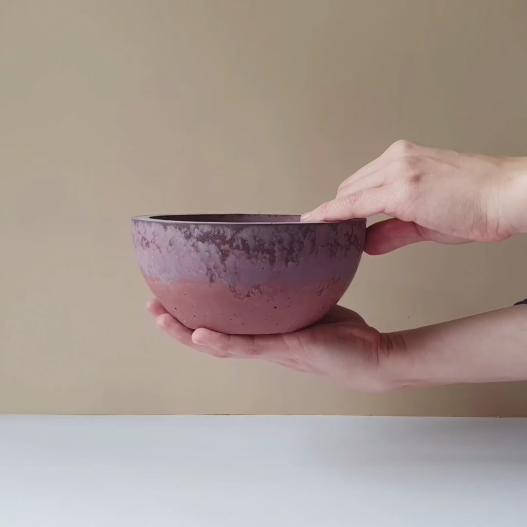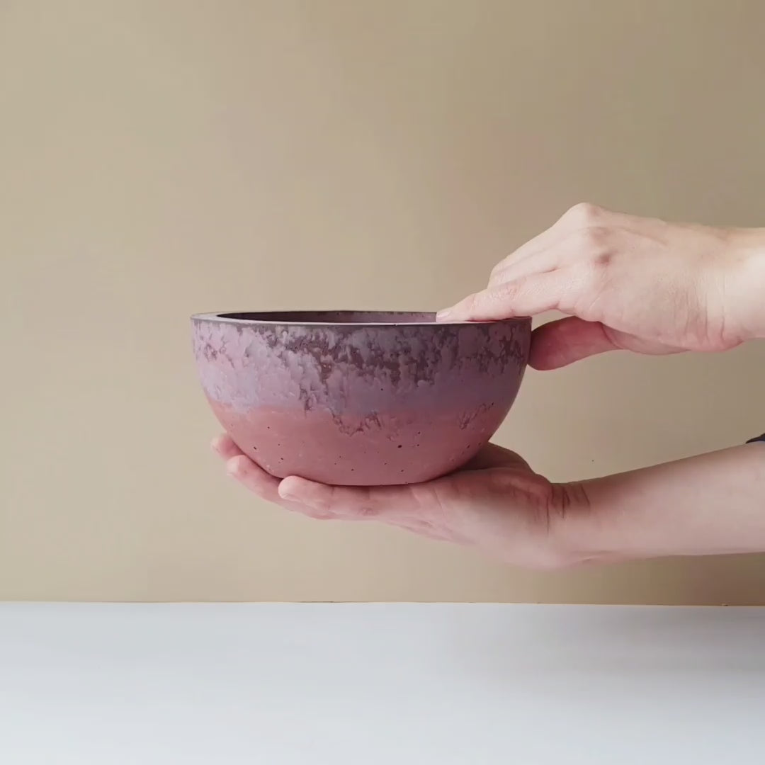 Mindegyik Orb tálat gondosan, kézzel öntök anyagában színezett betonból. Az anyag szépsége a természetes textúrájában és egyedi mintázatában rejlik. A végső színt több tényező is befolyásolja: a pigmentek intenzitása és terjedése, az öntőforma anyaga, valamint a beton kötésének körülményei, mint a hőmérséklet és a páratartalom. Ezek okozzák, hogy nincs két ugyanolyan teton forma termék, akár ugyanabból a keverésből is különböző árnyalatú darabok jöhetnek létre.