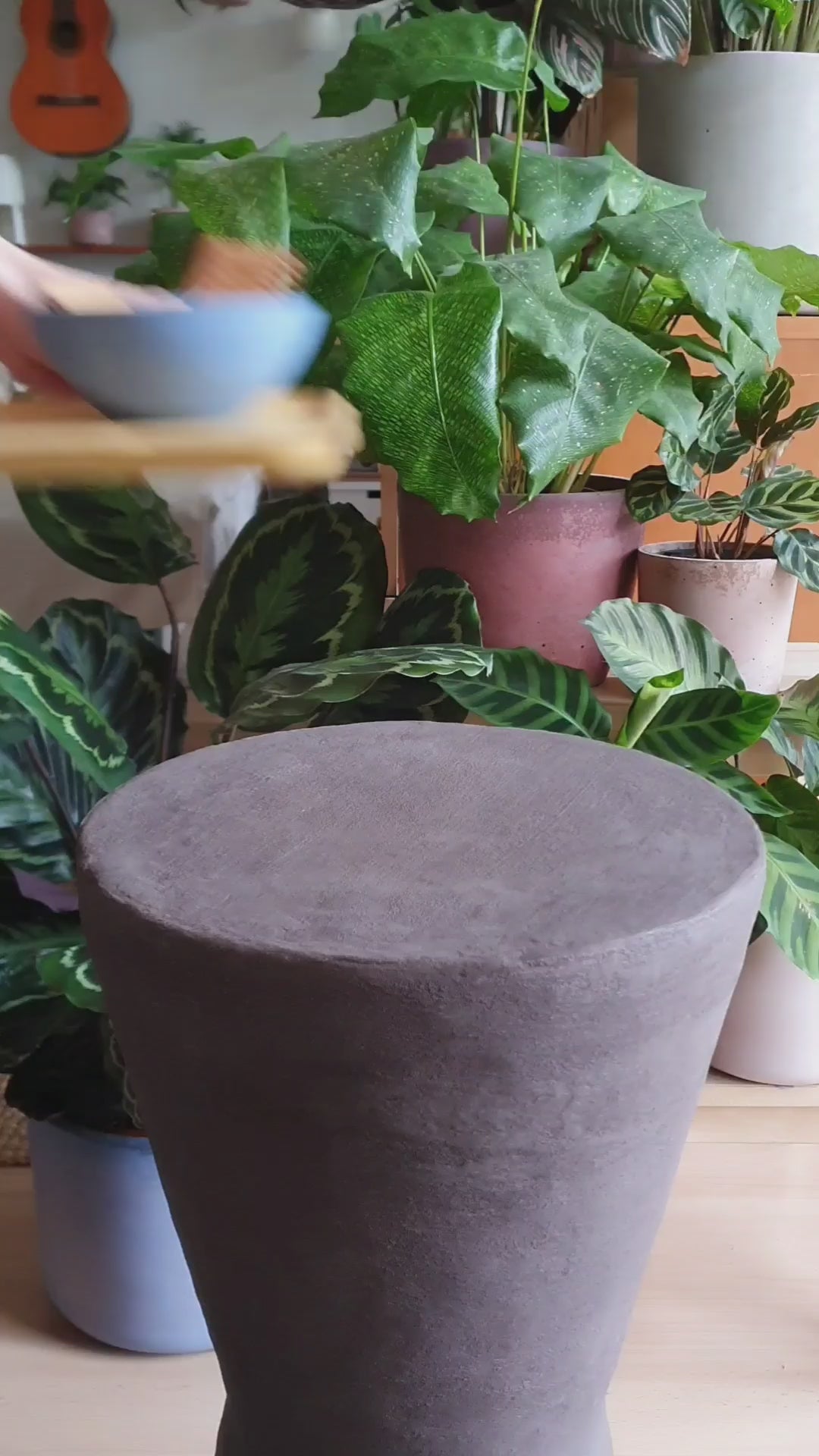 A Timglas sokoldalú bútordarab, amely növényállványként, lerakóasztalként vagy sarokasztalként egyaránt megállja a helyét. Különleges anyagkeverékből – betonból és újrahasznosított papírból – készül, így könnyebb a hagyományos betonnál, mégis tartós és ellenálló. Klasszikus homokóra formája időtlen és modern, mégis melegséget ad az enteriőrnek. A dizájn lényege a minimalista vonalvezetés és a kézműves textúra kontrasztja. A szoborszerű megjelenés önmagában is dekoratív, amely nem tolakszik, mégis karaktert ad a környezetének. Épp elég jellegzetes ahhoz, hogy megragadja a tekintetet, miközben visszafogott is, így szinte bármilyen stílusba illeszkedik.